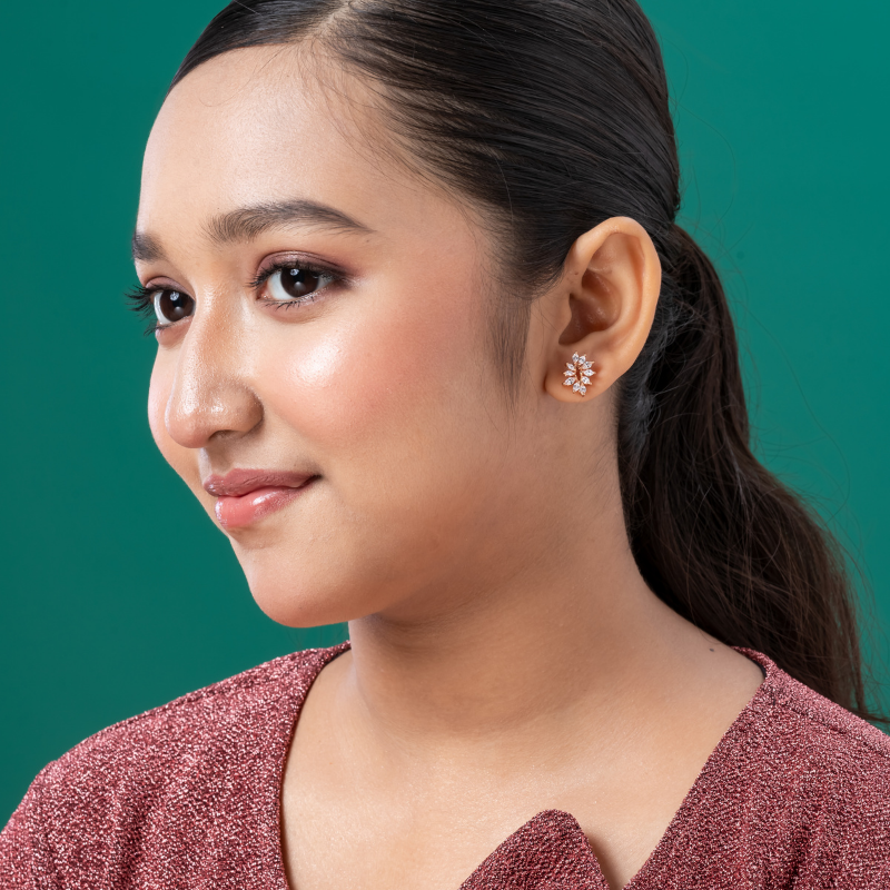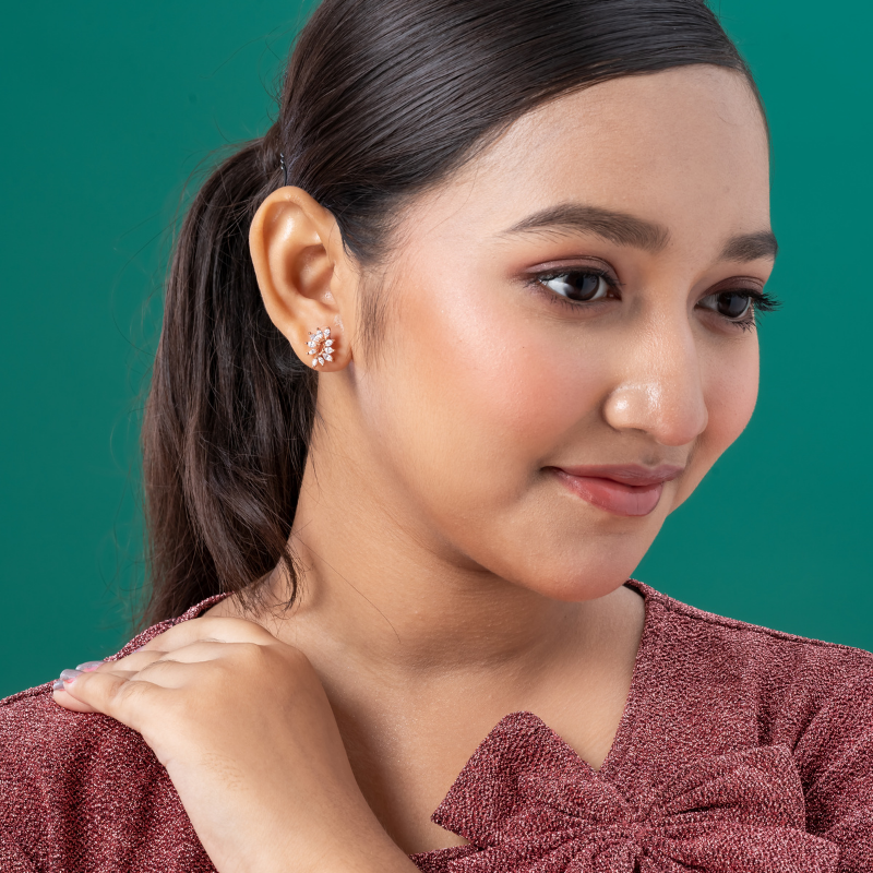 Drawing from the elegance of dew-kissed ferns at dawn, the Crystal Fern Studs bring nature’s delicate grace into a timeless jewellery piece. Designed for those who admire subtle brilliance and organic forms.