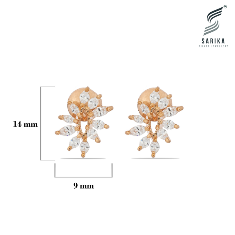 Crafted in high-quality 925 sterling silver with a rich gold finish, these studs mimic the gentle curve of fern leaves. Each leaf is formed by marquise-cut white zircons arranged to create a flowing, radiant silhouette. The graceful cascade adds movement and sparkle, making them perfect for both day and evening wear.