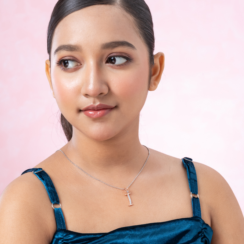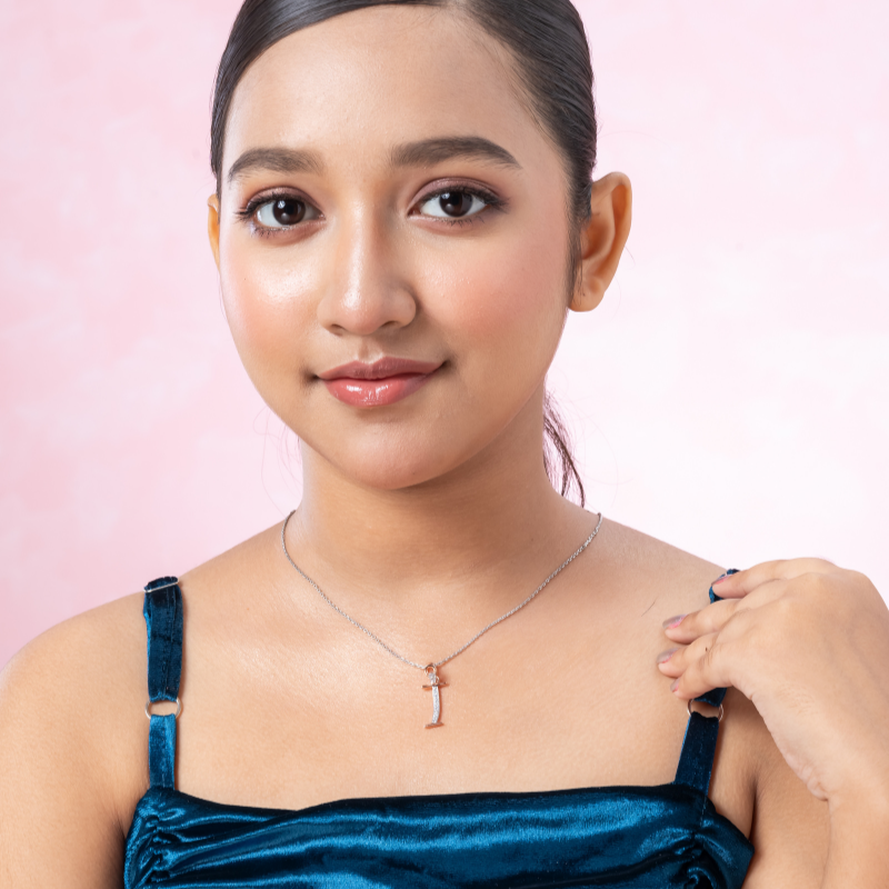 Crafted in 925 sterling silver with a lustrous high-polish gold finish, this pendant features the letter ‘I’ accented with delicate white zircons. Its clean, vertical silhouette and sparkling embellishments give it a radiant presence while keeping a refined, understated charm.
