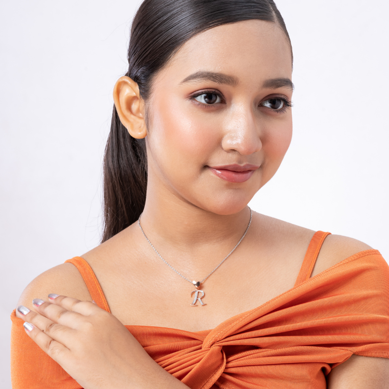 Crafted for those who wear their identity with quiet confidence, the R Shine Pendant embodies elegance and personal expression. Its radiant design brings a luminous touch to your everyday style.
