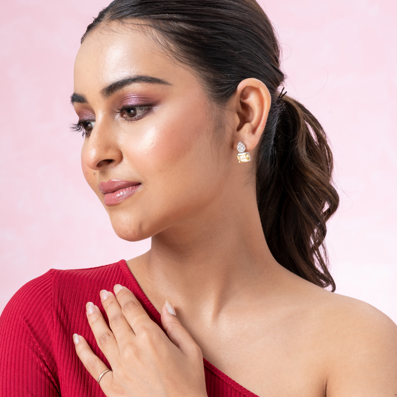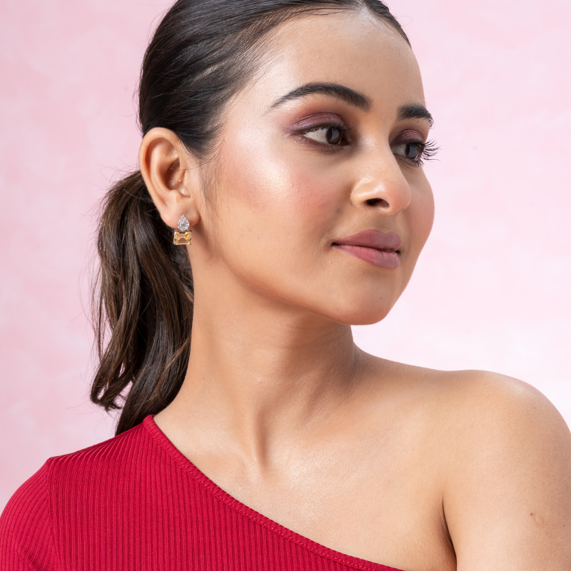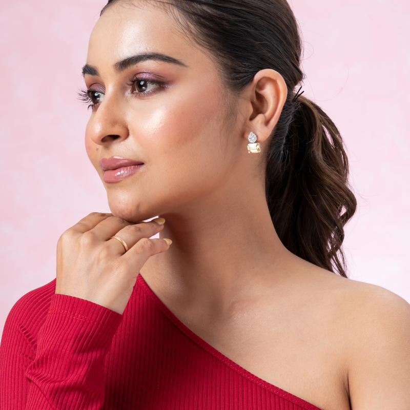 Let these earrings shine with an off-shoulder blouse or a sleek evening gown. Add soft curls or a low bun to complete your golden-hour glow.