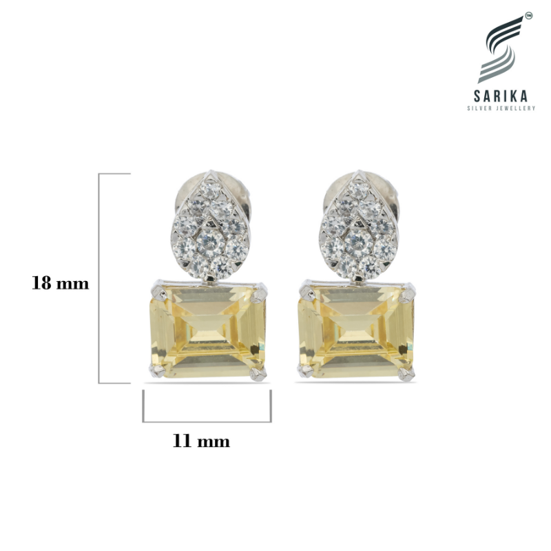 Crafted in high-quality 925 sterling silver, these earrings feature a dazzling emerald-cut yellow zircon that glows like captured sunlight. It’s paired with a shimmering teardrop of pavé-set white zircons, adding just the right touch of sparkle. The vertical composition elongates the neck and flatters all face shapes, making it a standout piece for any occasion.