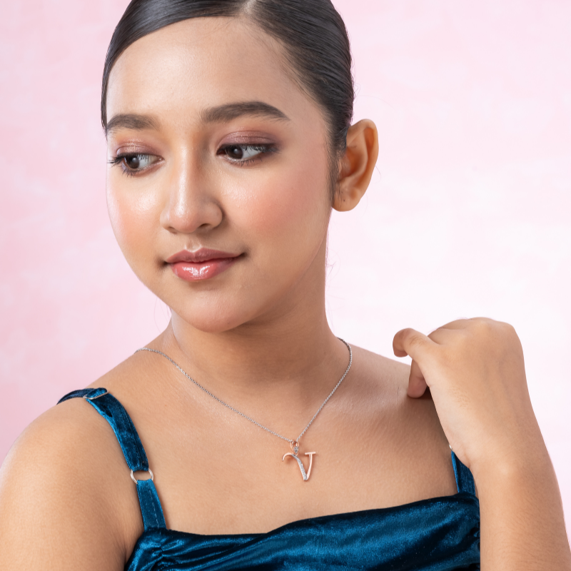 Wear it as a signature piece on a fine chain or layer it with minimalist necklaces for a stylish stacked look. It also makes a thoughtful gift for someone whose name starts with ‘V’.